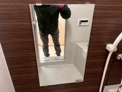 水垢やカルキなどで曇りきっている鏡💦ですが、